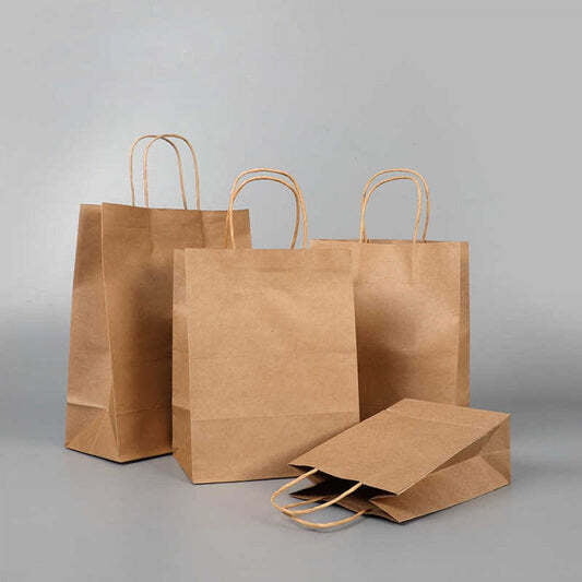Kraft paper bag with handles Size: (W x D x H) 10 x 5 x 13 in - 100gsm/ 250 pcs