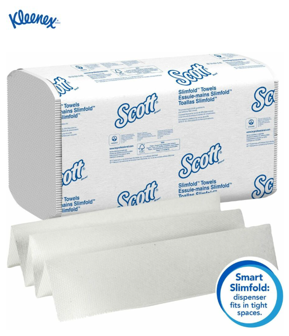 Slimford hand paper towel (Kleenex). (90 paper towels/pack, 24 packs/carton, 2,160 paper towels/carton)